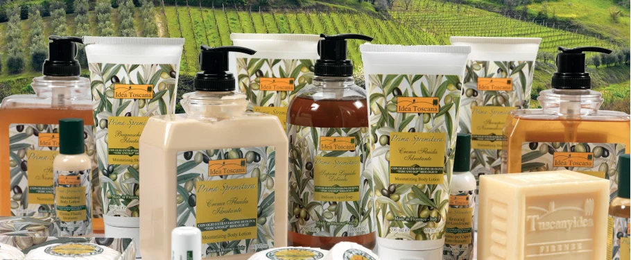 Du genialūs verslininkai iš Toskanos 2008 m. sukūrė naują kosmetikos gaminių liniją, kuri tausoja aplinką, žemę ir sveikatą. Tai „Idea Toscana Prima Spremitura“ – pirmoji kosmetikos linija iš aukštos kokybės maisto produktų, kuriai Žemės ūkio ministerija suteikė PGI (Protected Geographical Indication – saugoma kilmės vietos nuoroda), nes visa ji sukurta naudojant ekologišką, ypač tyrą alyvuogių aliejų „Toscano PGI“.